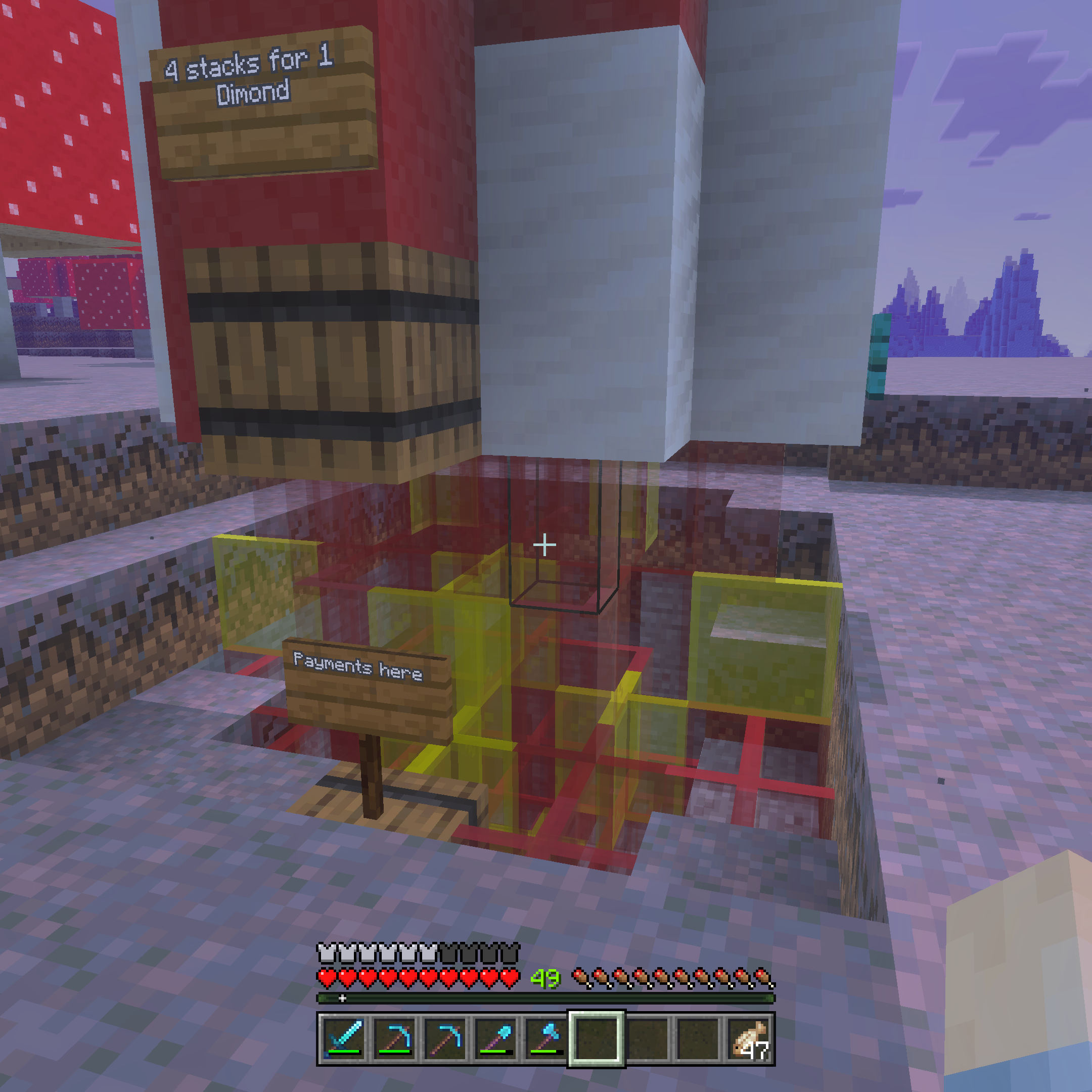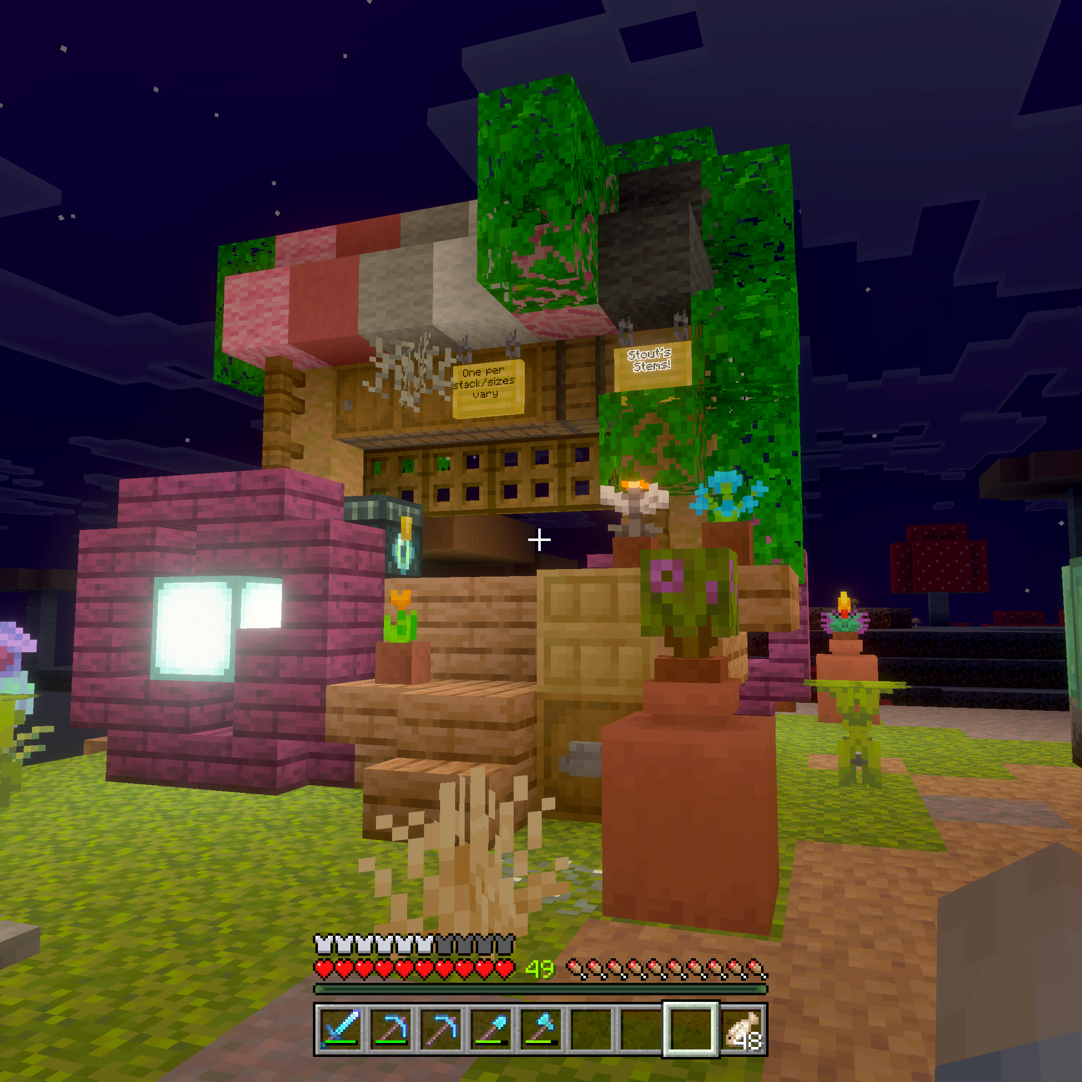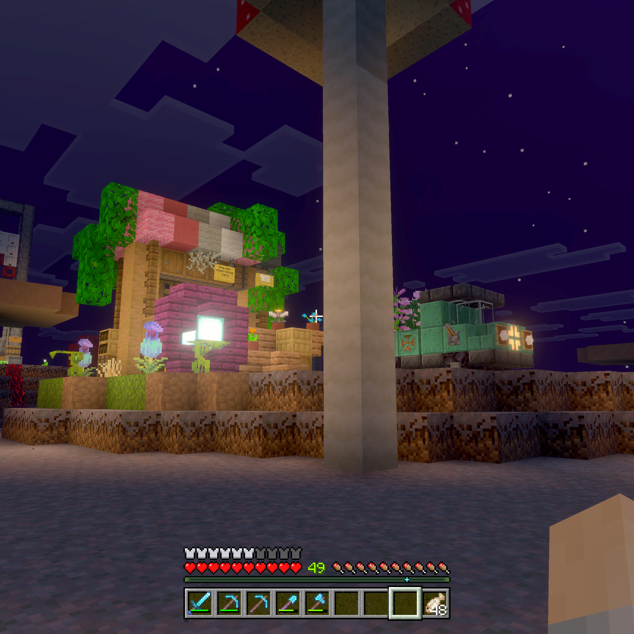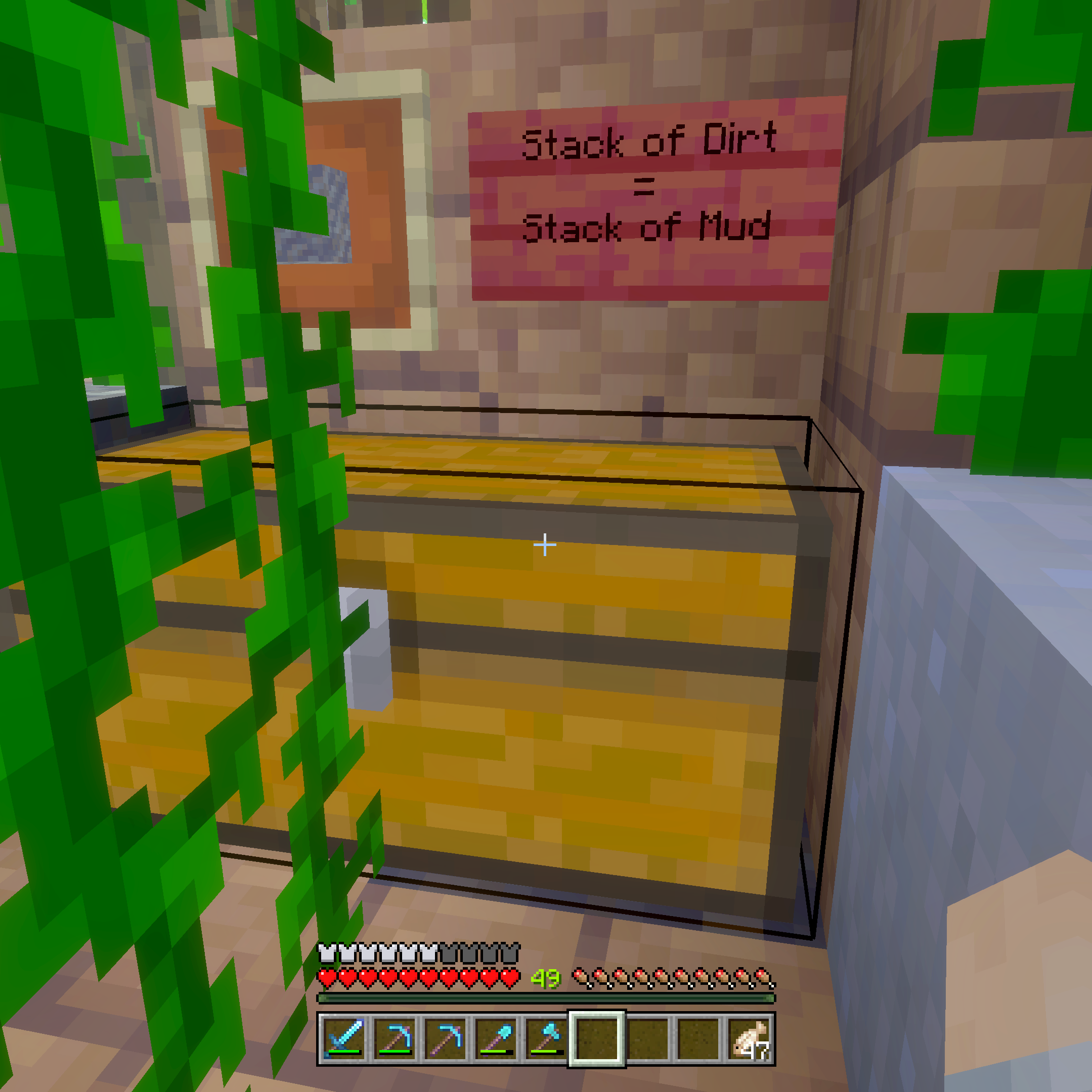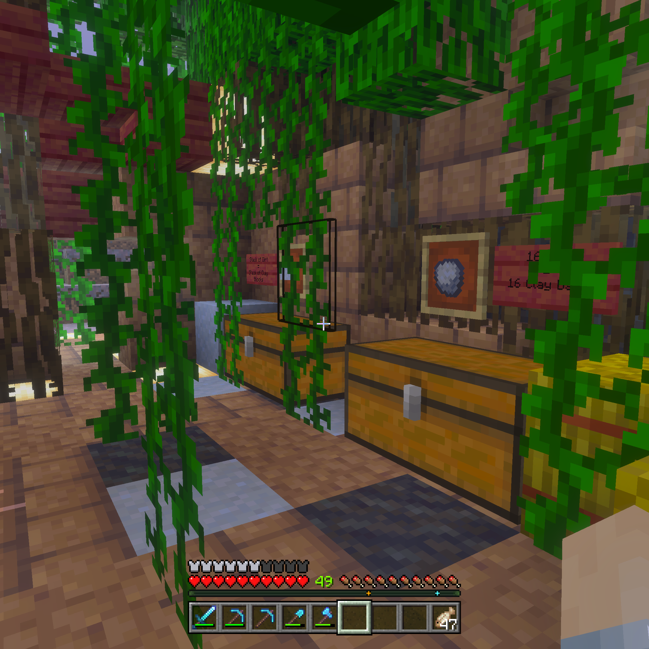 Hidden withing the mangrove thicket is the only shop that uses dirt as payment. At first this seems like a low price, but as Minecraft professionals know, this block because more valuable as you progress into the world.