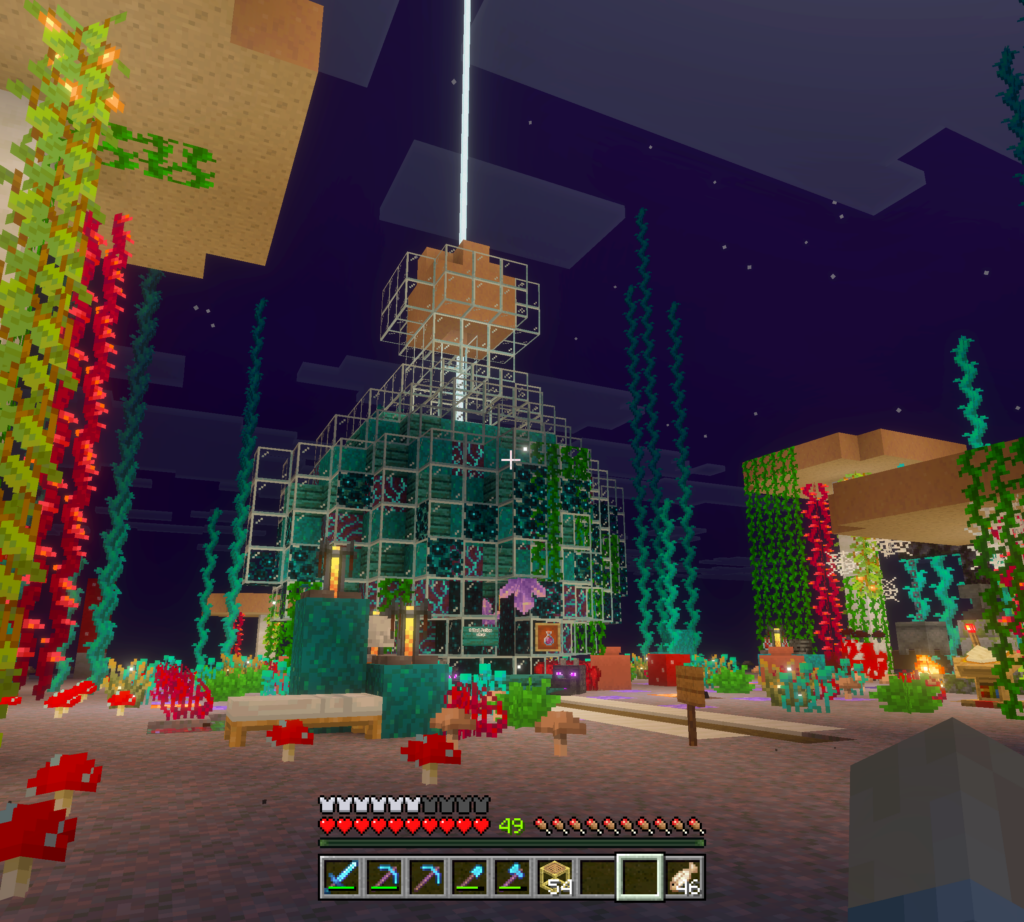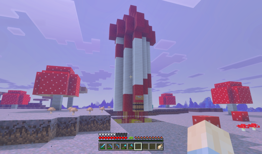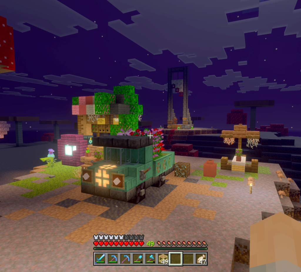 Welcome to the Humble Mall! Our shopping district is just getting started. We settled on a peaceful mushroom island that is just a Nether hop away from spawn. You can take the ice boat, train, or fly through the North wing of the Nether hub. Once you arrive, you can take a walk through a curated display of wildlife.