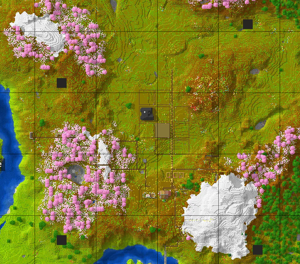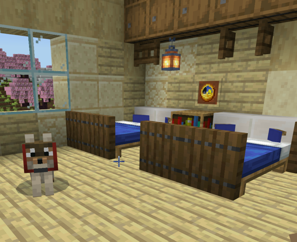 Humble Homesteads also offers a lot of community all centered around the Community Center. In the center, you will find shared resources, an ender chest, and different types of construction equipment. Also, be sure to say hi to the Golem and the wolves hanging out to be of assistance. There is also a shared mine nearby with access to lava and dripstones.